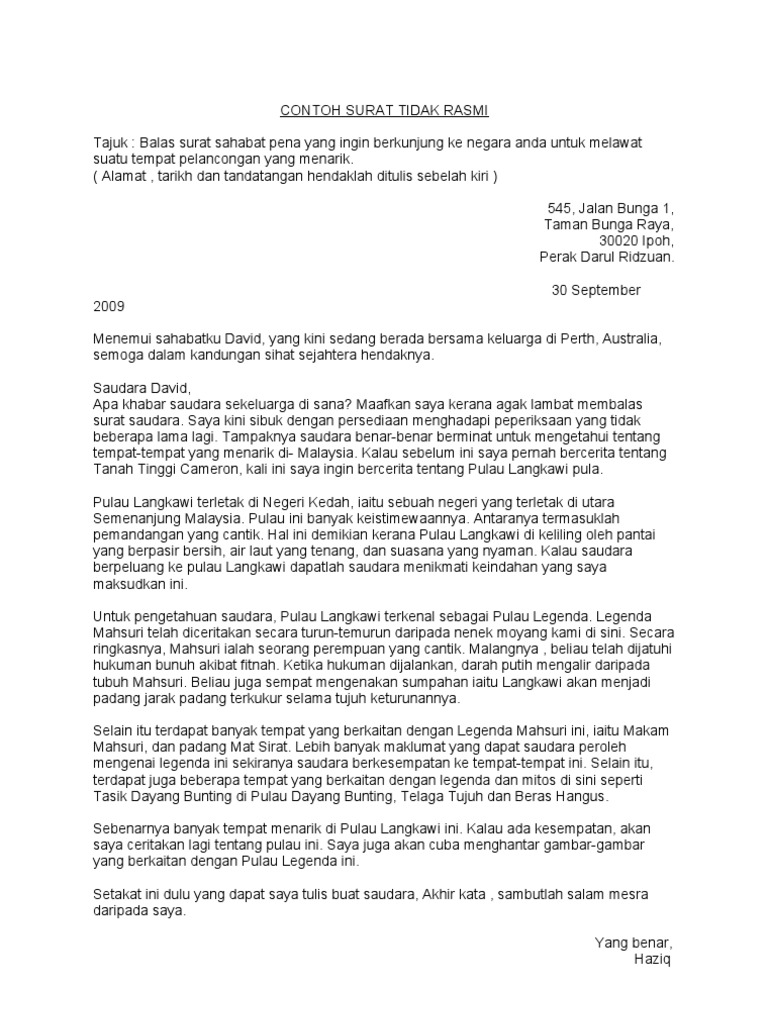Contoh Surat Tidak Rasmi Tentang Tempat Menarik Di Malaysia Letter 7saudara Com
